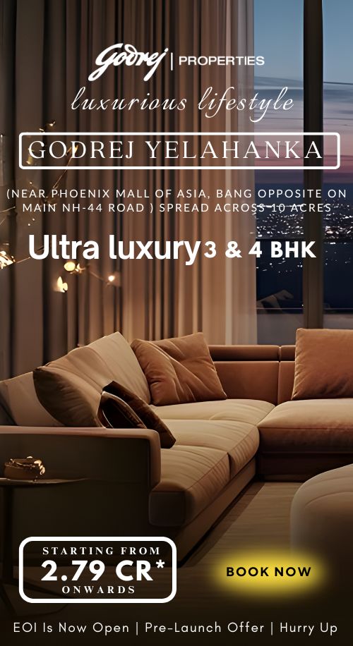 Godrej Yelahanka is an exciting new launch in North Bangalore, located near Phoenix Mall of Asia and directly opposite the Main NH-44 Road. Spread across 10 acres, this premium development features 9 high-rise towers set amidst 75% open spaces, offering a perfect balance of luxury and serenity. The project enjoys exceptional connectivity, situated next to the Amazon Office and adjacent to the upcoming Bagalur Metro Station, ensuring seamless access to key business hubs and social infrastructure.